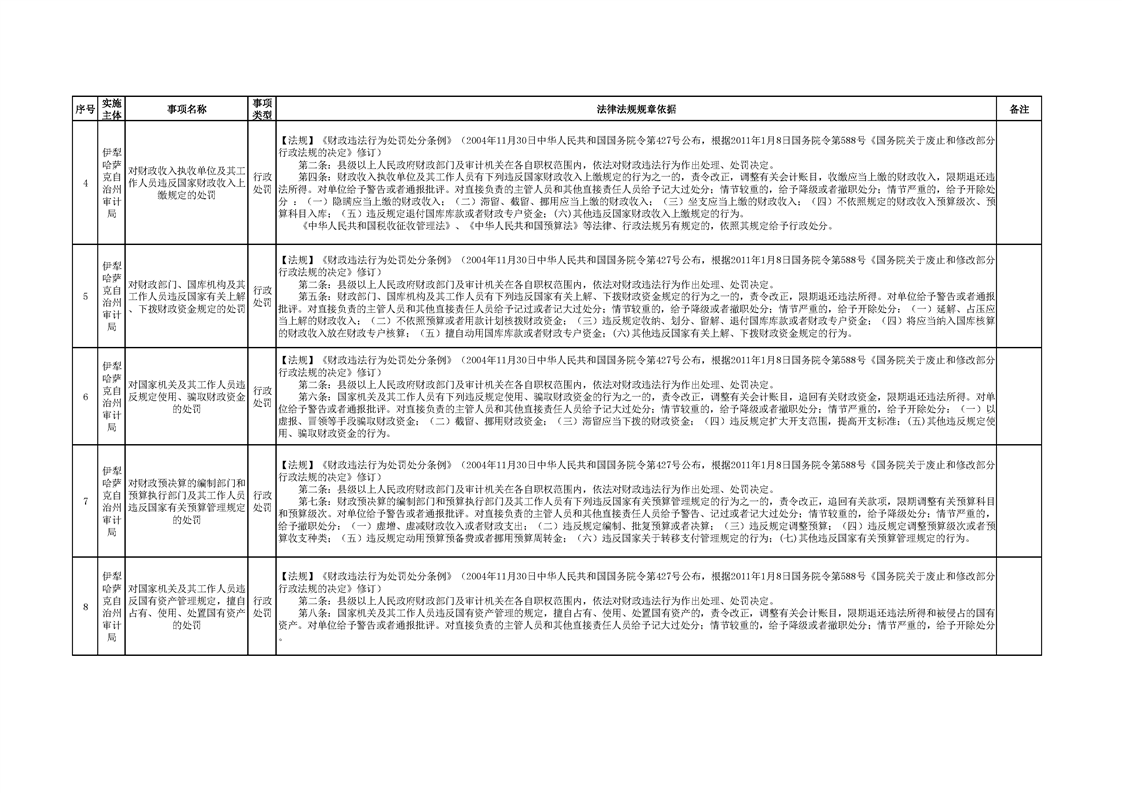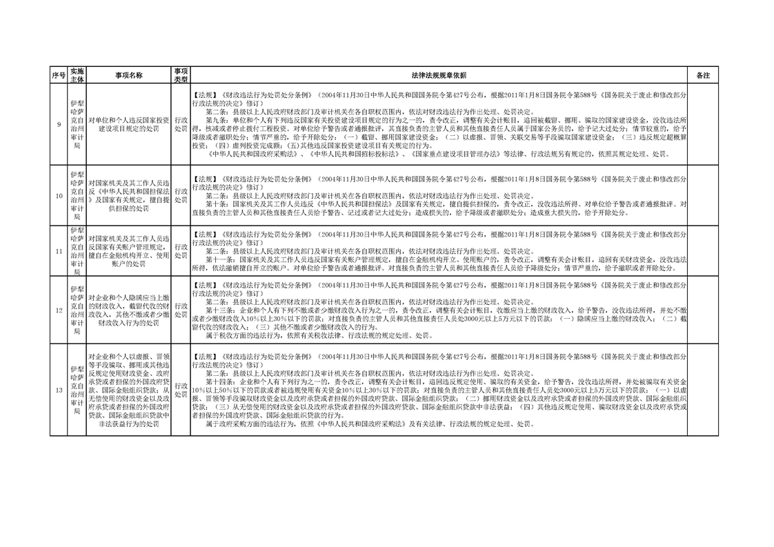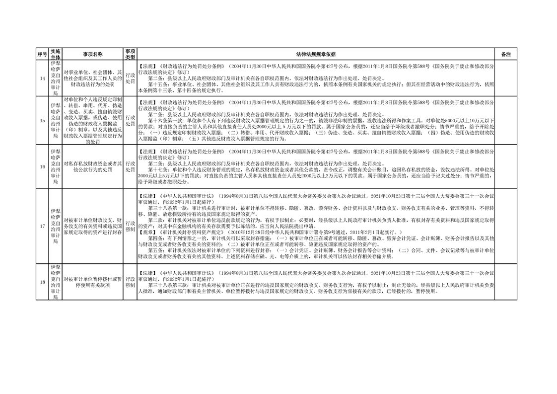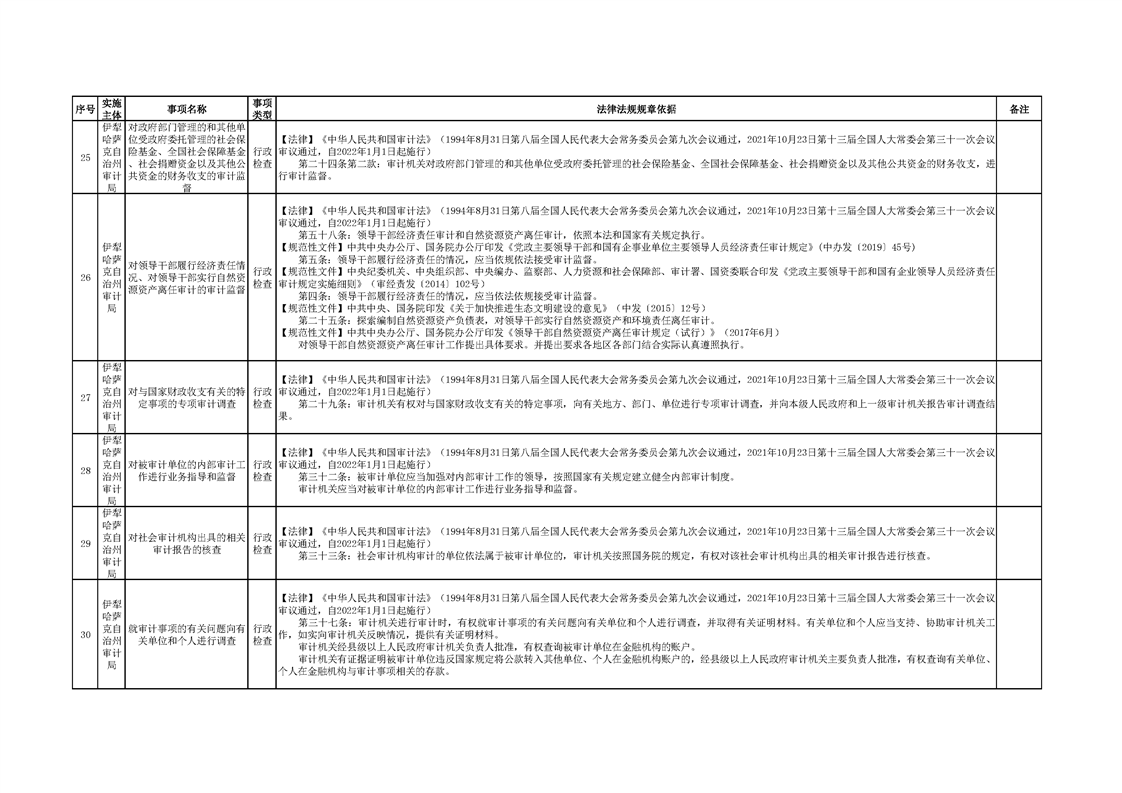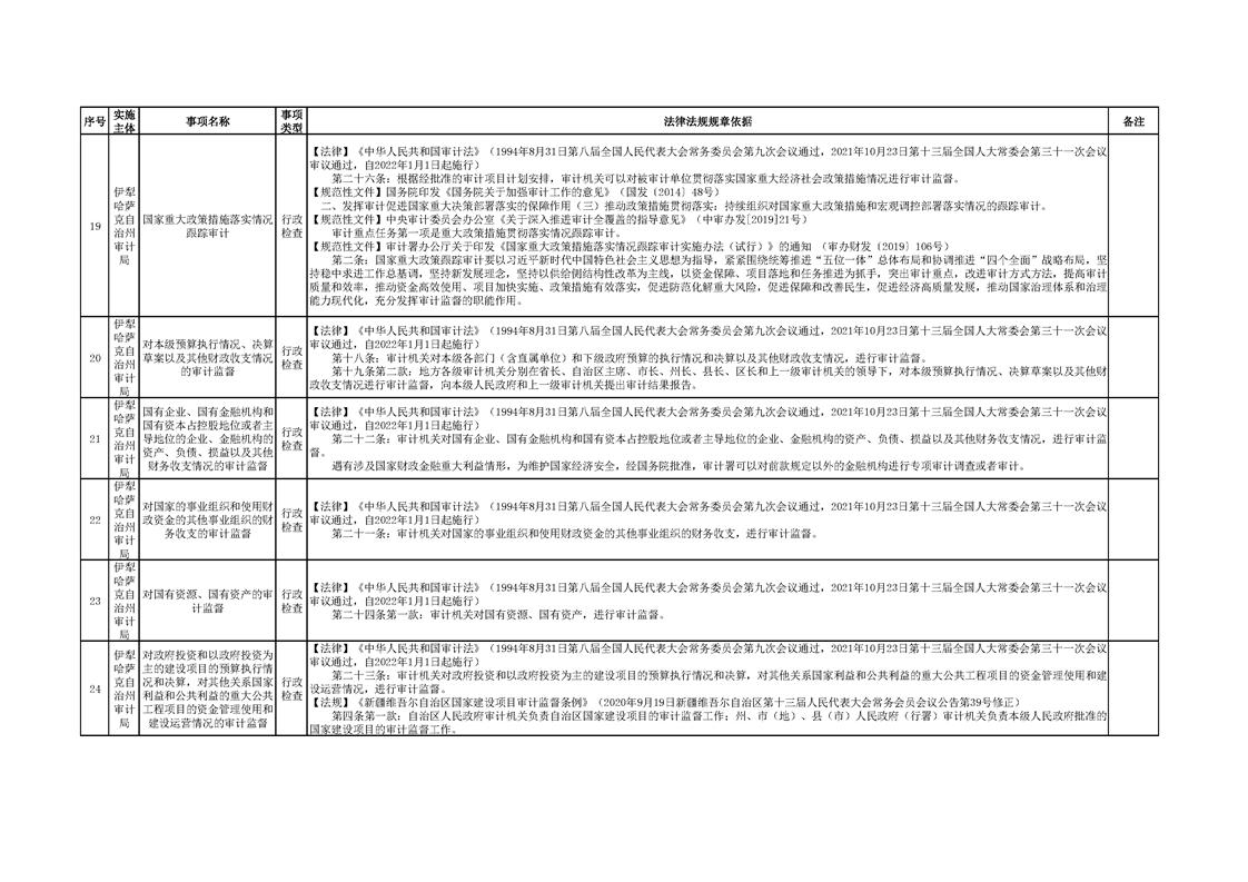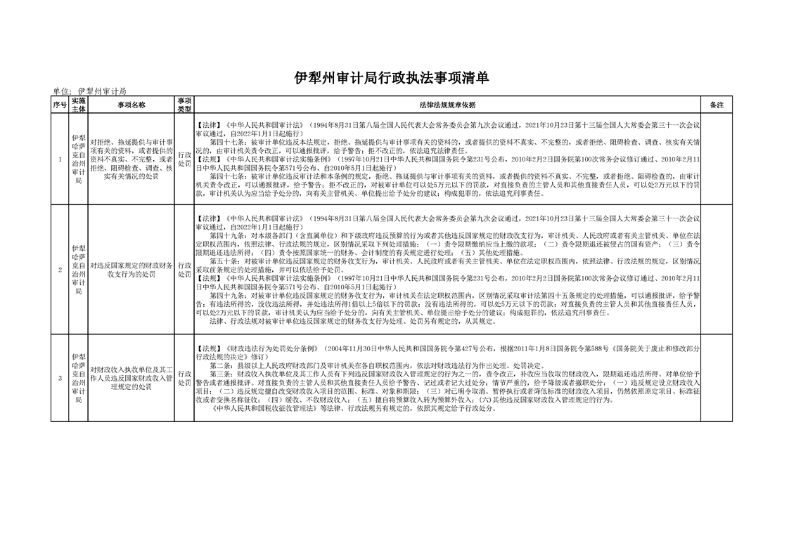 伊犁州审计局行政执法事项清单
