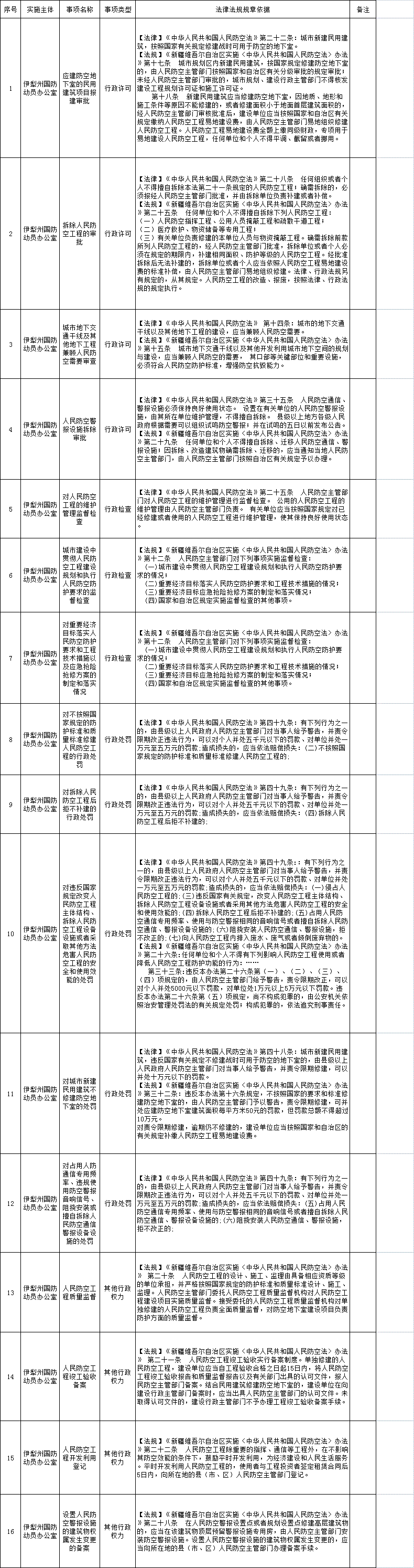 伊犁州国动办行政执法事项清单