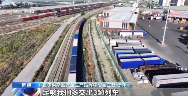 霍尔果斯站安全生产指挥中心副主任于荣说:“出入境列车查验时间由以前的50分钟缩短至目前的30分钟,全天我们可节省出380分钟,足够多交出3趟列车。”