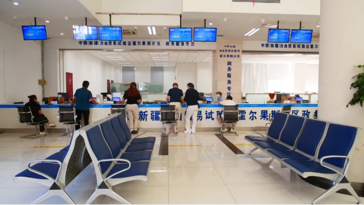 中国(新疆)自由贸易试验区霍尔果斯片区政务服务窗口。