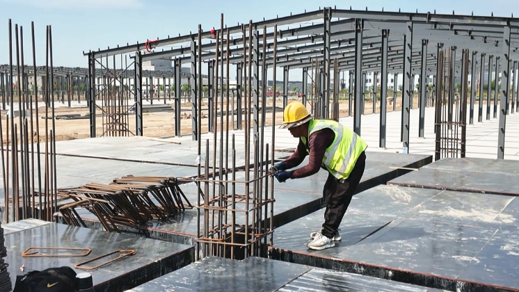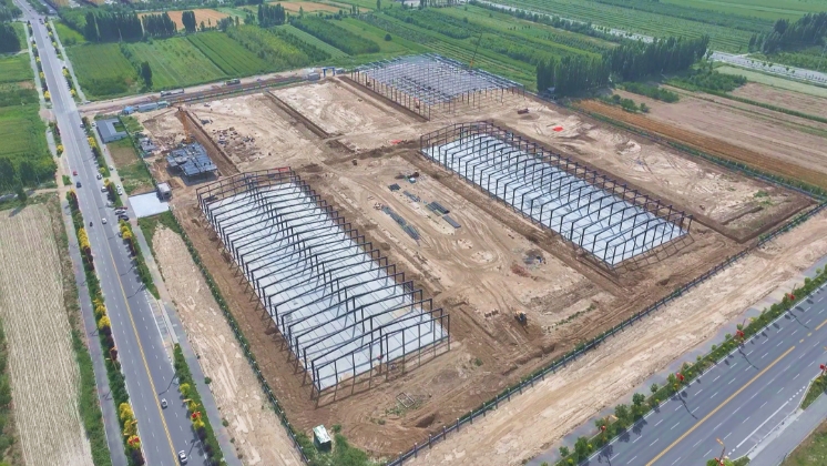 新疆银晟板业新型材料有限公司项目负责人方亚说:“该项目于今年4月动工建设,目前3栋厂房主体已完成,1栋办公楼、1栋宿舍正在建设,预计9月底完工、10月投产。”