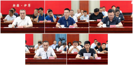 会上,国能尼勒克能源开发有限公司总经理方云飞、新疆瑞诺生物科技有限公司副总经理尚甫、伊犁州混凝土协会会长袁超、霍尔果斯美食蓝食品科技有限公司总经理努尔艾力·吾麻艾力、新疆盛世兰亭文旅有限公司总经理金磊依次作交流发言(由左至右、由上至下)。孙艺男摄