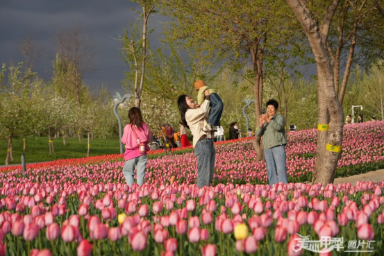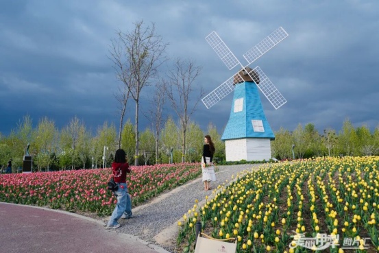 同样被花海吸引的,还有来自郑州的摄影爱好者杨志远。“这里的郁金香太美了,搭配着园内的地形,拍出来特别有质感。”他一边调整参数,一边兴奋地说道,“我已经把拍好的照片发到社交媒体上了,希望大家都能来这里旅游打卡,感受这么漂亮的春天。”