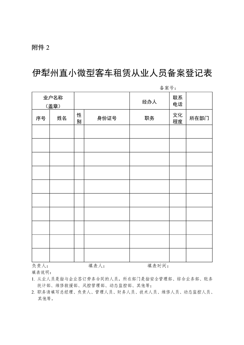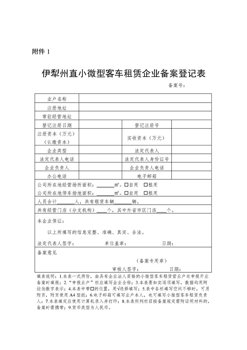附件:1. 伊犁州直小微型客车租赁企业备案登记表