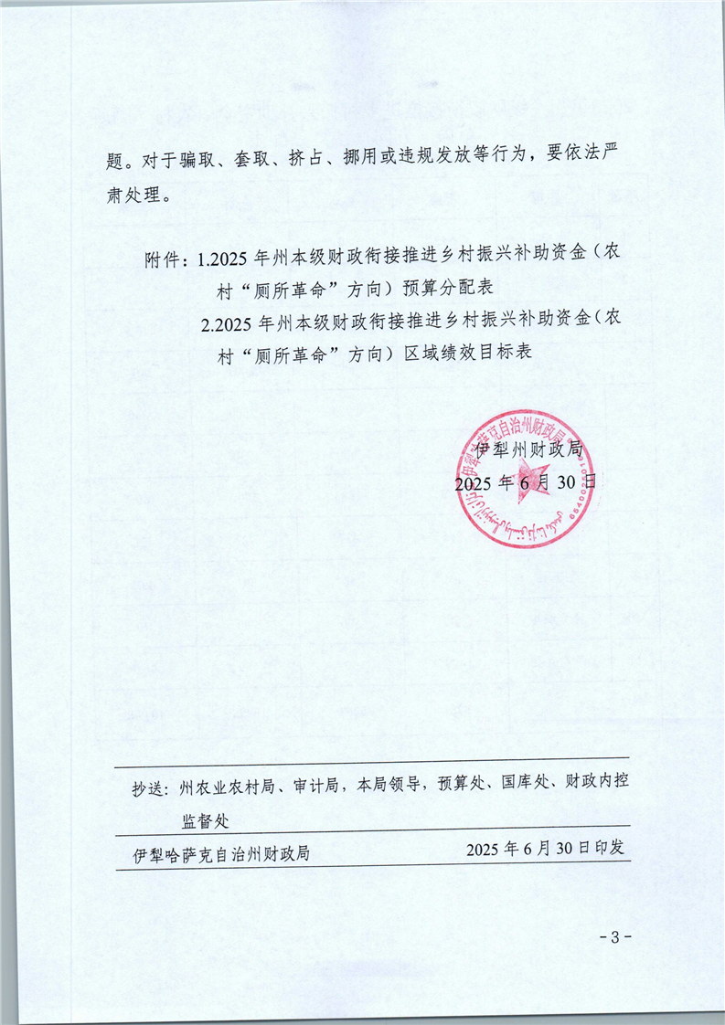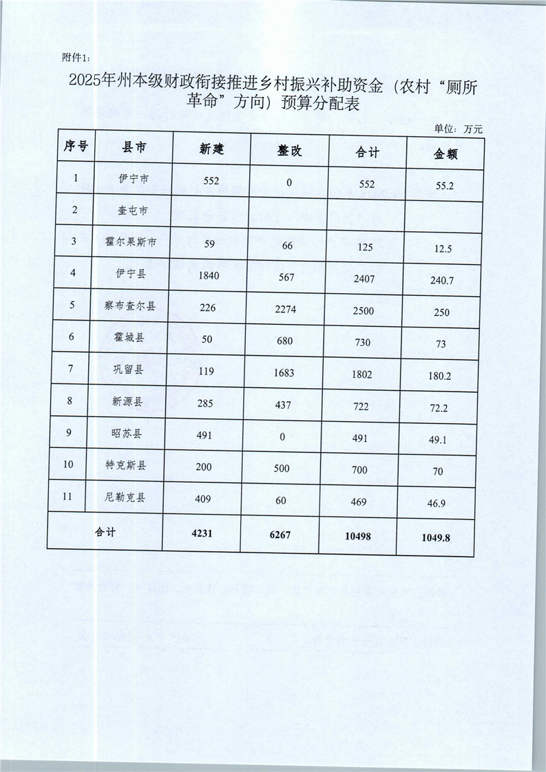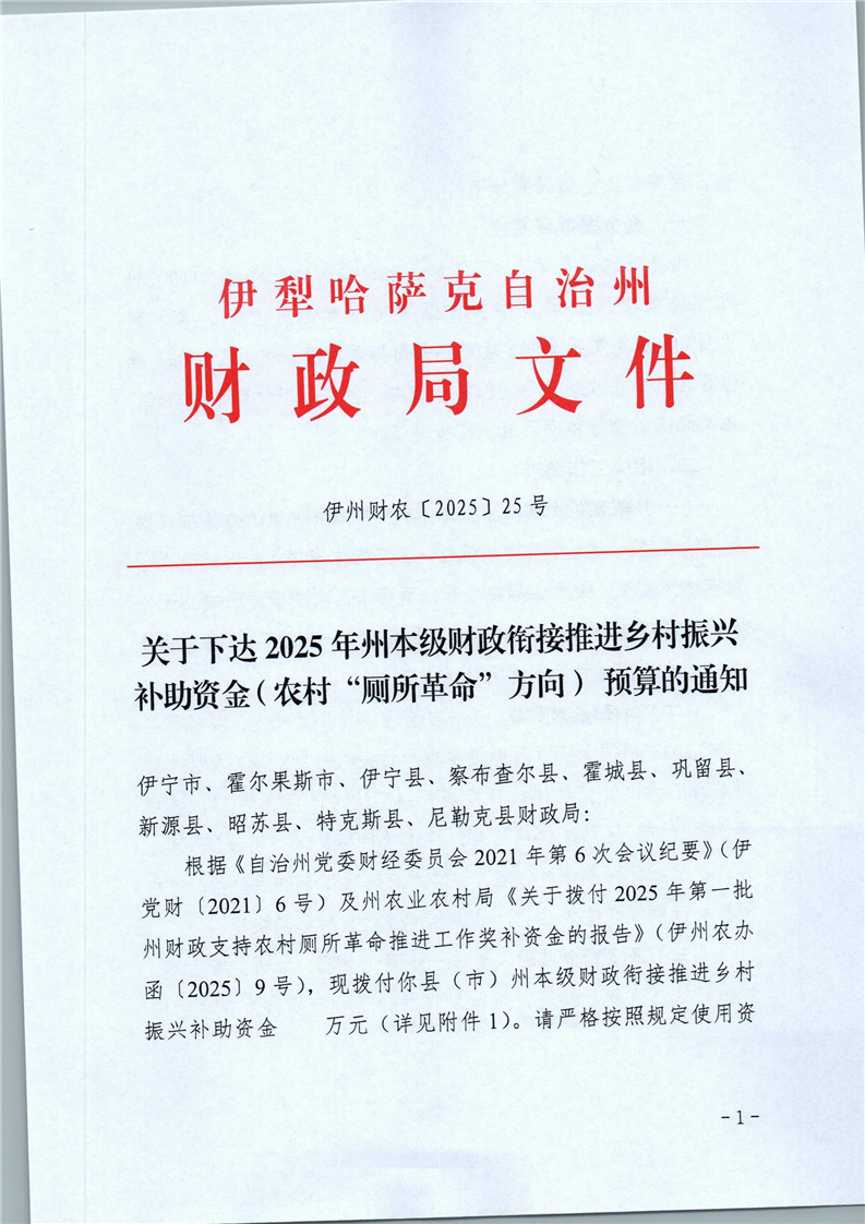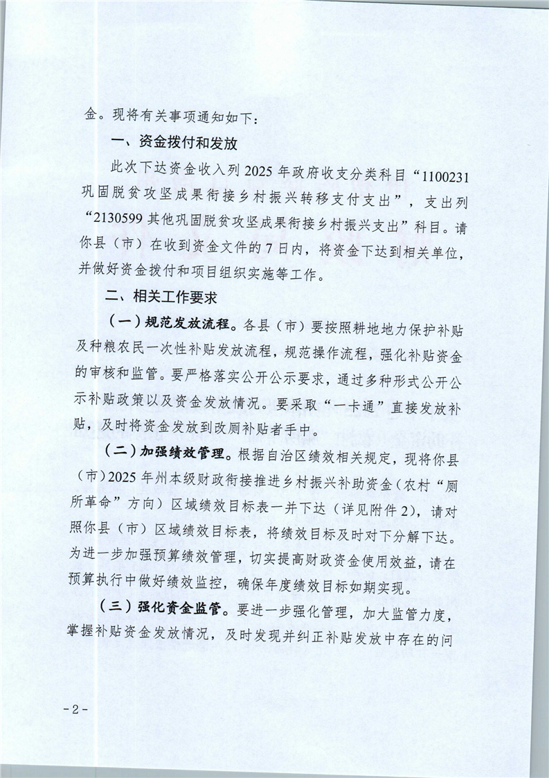 关于下达2025年州本级财政衔接推进乡村振兴补助资金(农村“厕所革命”方向)预算的通知
