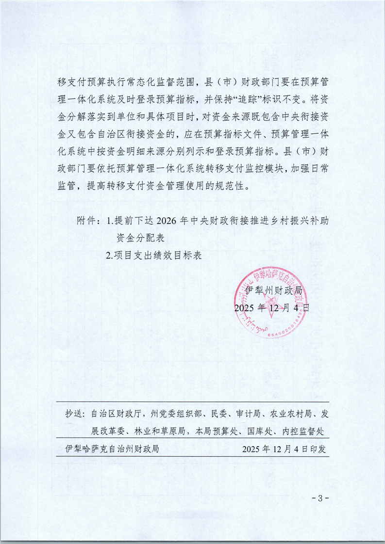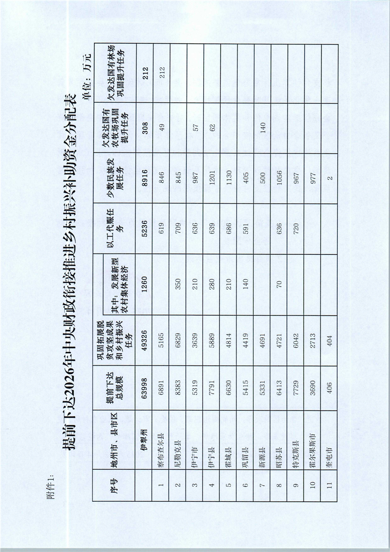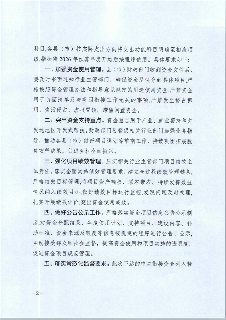 关于提前下达2026年中央财政衔接推进乡村振兴补助资金预算的通知