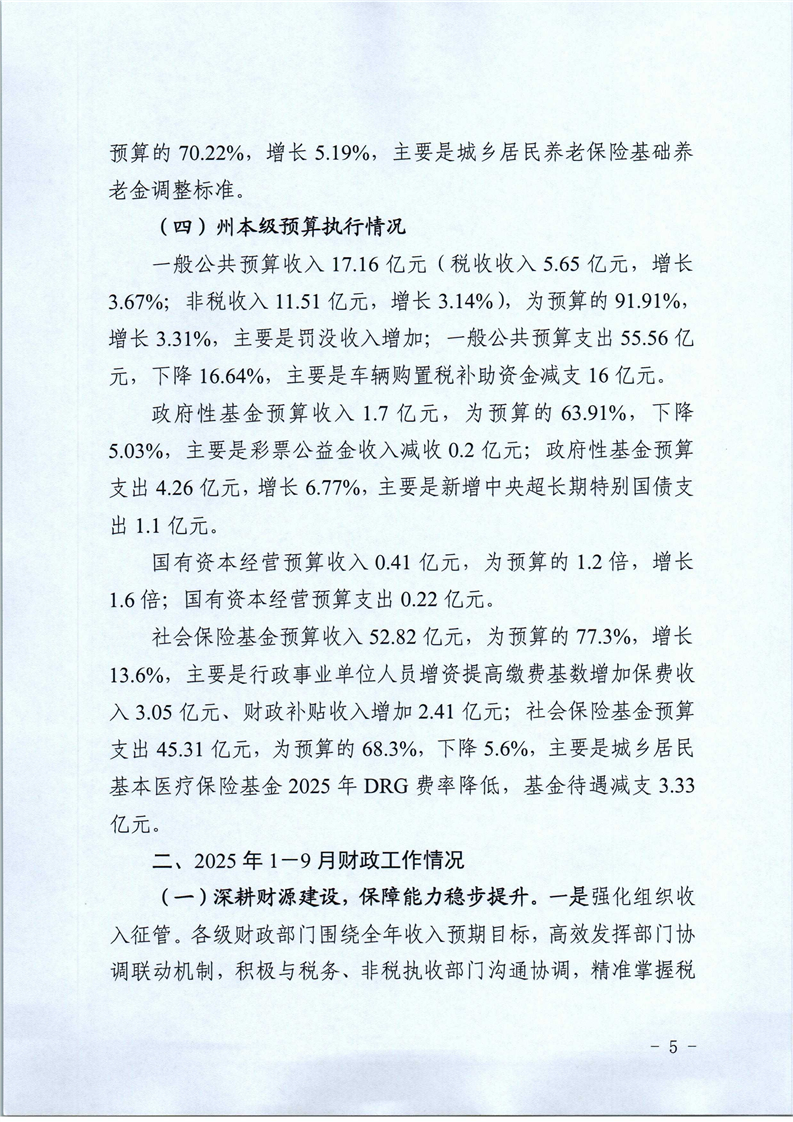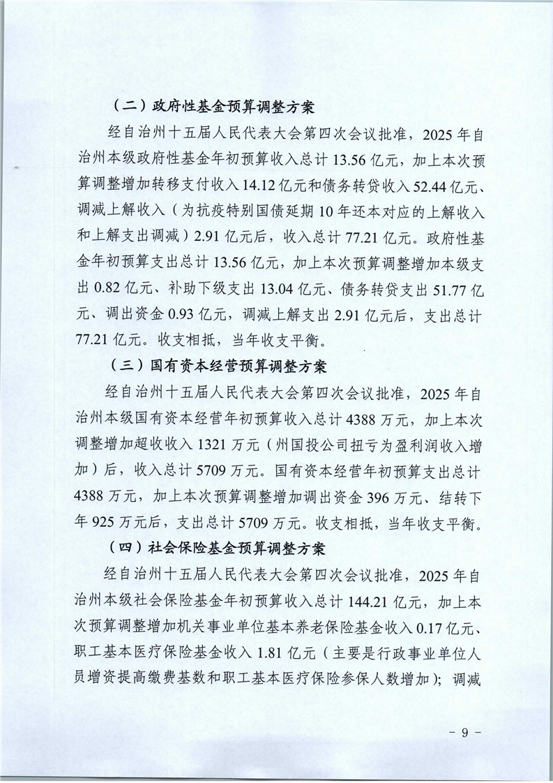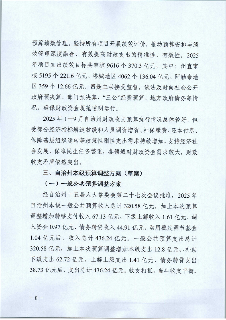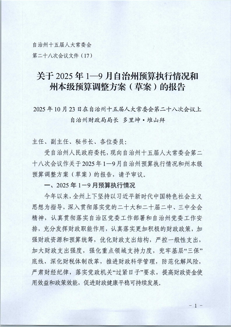 关于2025年1-9月自治州预算执行情况和州本级预算调整方案(草案)的报告