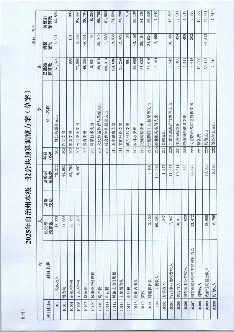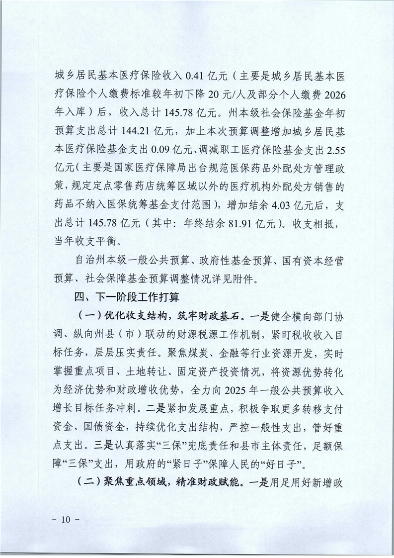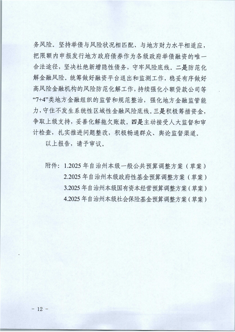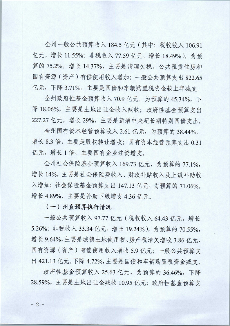 关于2025年1-9月自治州预算执行情况和州本级预算调整方案(草案)的报告