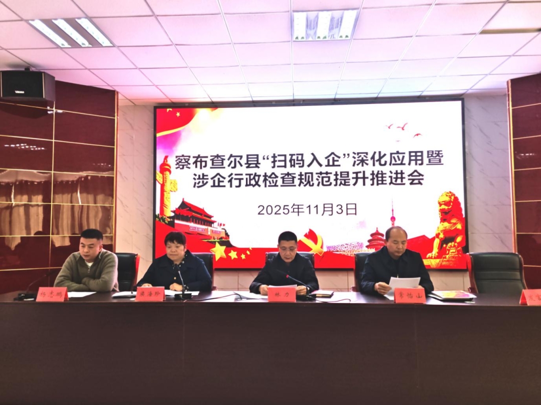 11月3日下午,察布查尔县召开“扫码入企”深化应用暨涉企行政检查规范提升推进会。各执法单位分管领导、执法人员、44家规上企业代表以及县营商环境建设局、商务工信局、司法局主要领导参加。参训人员通过“政策解读+实操教学+互动交流”的形式,系统学习“察布查尔码上入企”微信小程序使用技能,为推动察布查尔县“扫码入企”工作从“上线运行”向“规范高效”转型按下“加速键”。