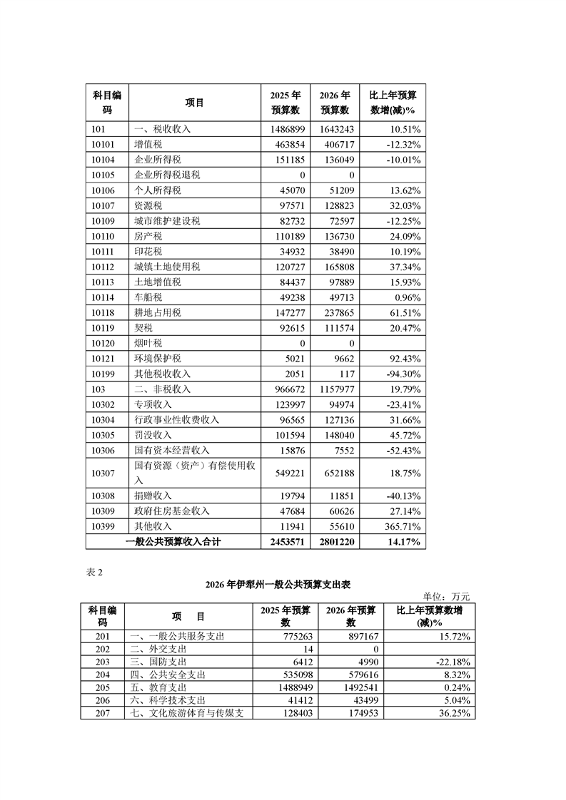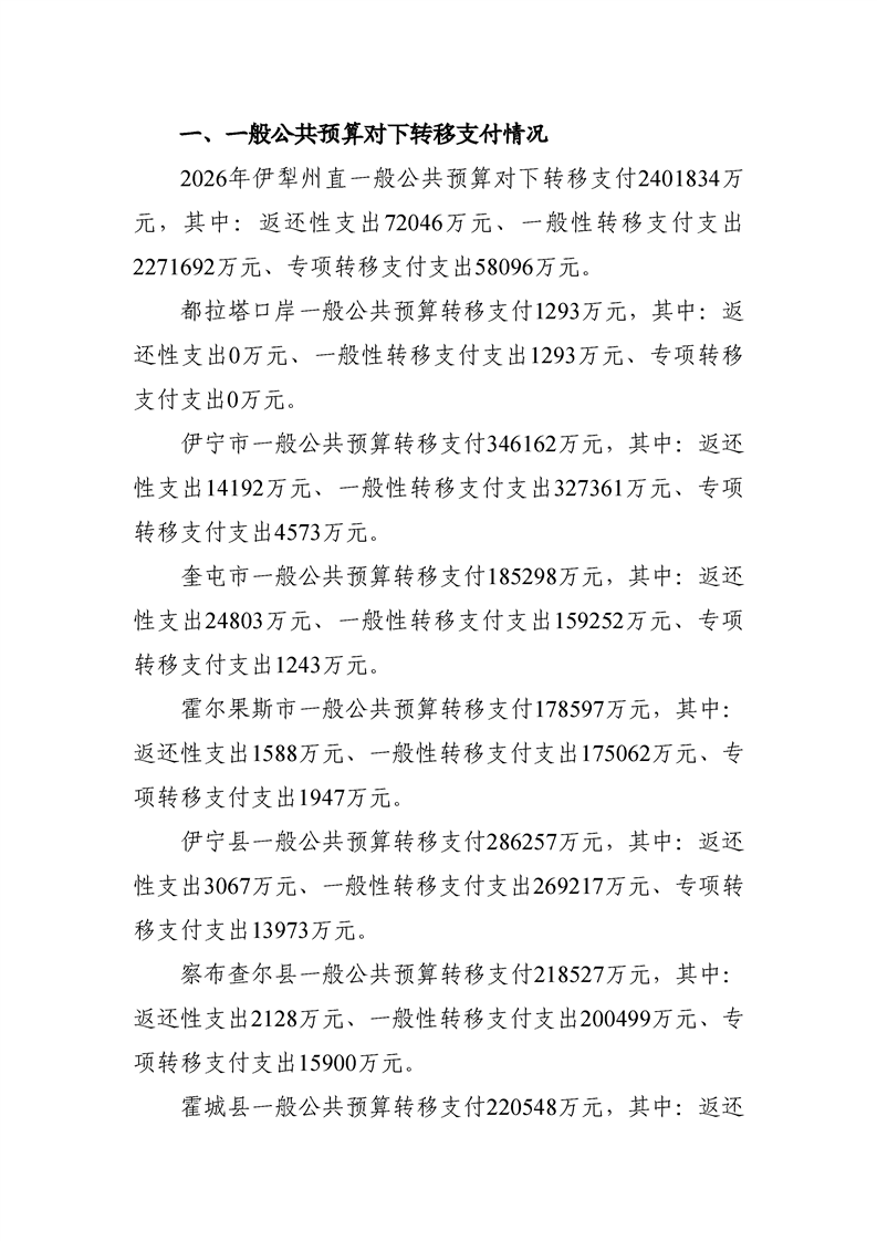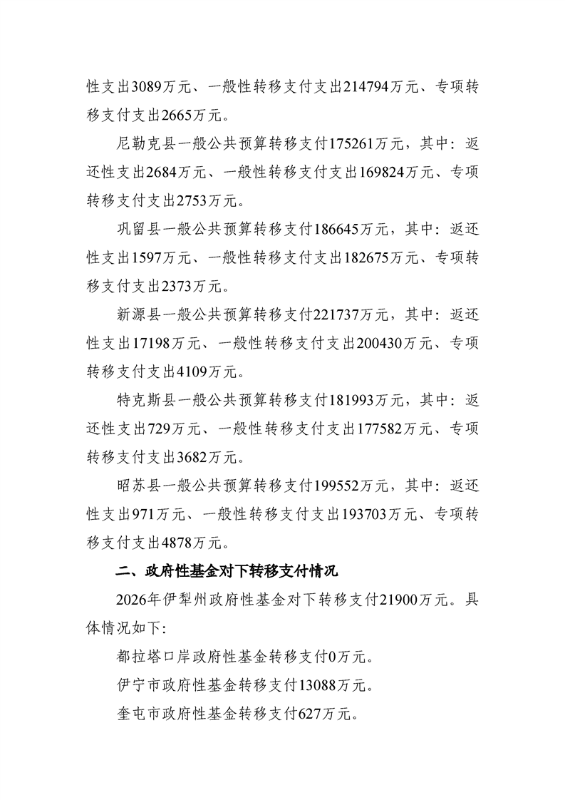 2026年伊犁州政府预算公开