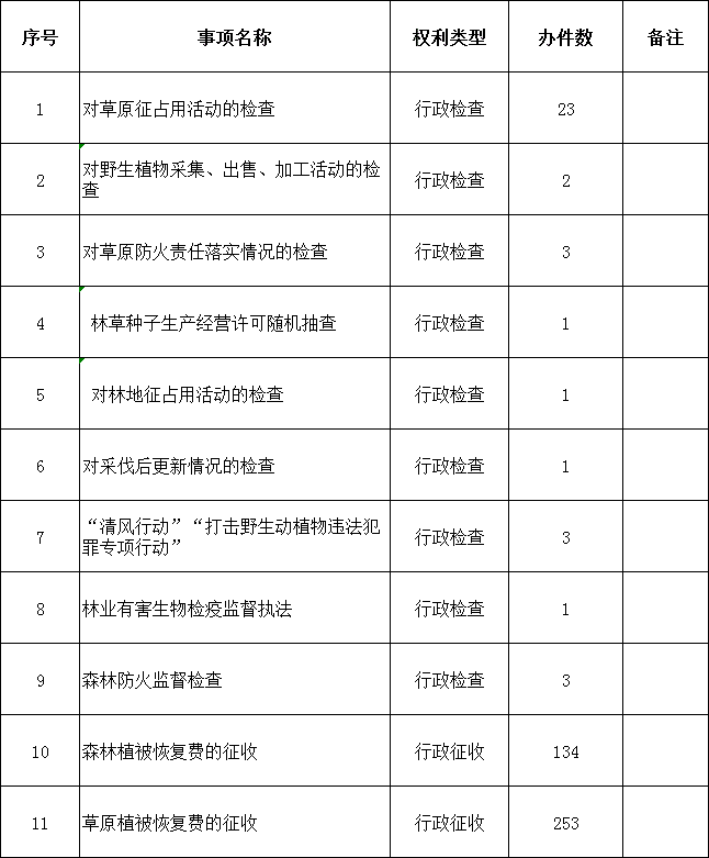 伊犁州林草局2025年对外管理服务权力事项办理情况表